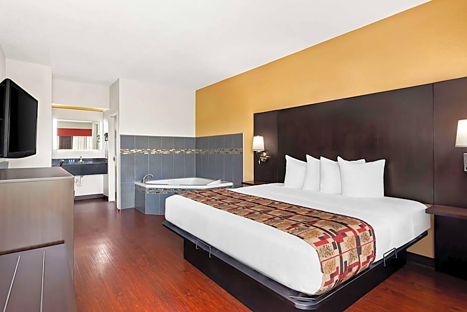 A range of room types is available, including smoking and non-smoking options. Examples include King Room with a whirlpool and bathtub, Downstairs King with a jetted tub, as well as standard king and double-bed layouts, providing choices to suit different travel needs.