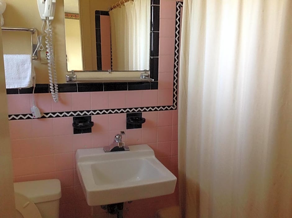 I knew this place was older from the moment we walked in it felt homey. The pink and black bathroom tiles were like being at my mom's house at my mom's house. They still use the old room keys. It was exceptionally clean no mildewey smell despite its age. The gentleman in the front office was super pleasant very informative. It's in-and-out of the way old little town that I would definitely stay at again.