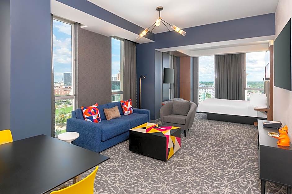 Welcome to Aloft Orlando Downtown, a vibrant 3-star hotel located in the heart of Orlando, Florida. Just a stone's throw away from the city center, this hip and trendy hotel is the perfect choice for travelers looking for a fun and convenient stay. With 319 amazing reviews and a minimum price of $160 per night, you can expect nothing short of an unforgettable experience.