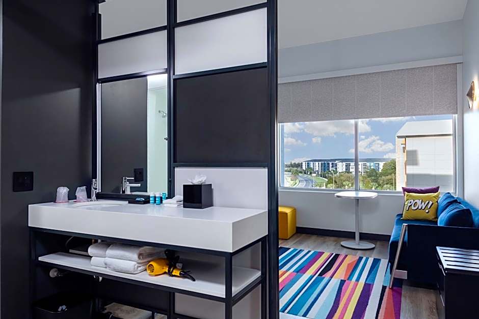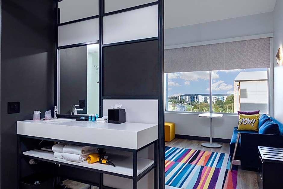 Welcome to the Aloft Orlando Lake Buena Vista, a vibrant and stylish 3-star hotel located at 7950 Palm Parkway in Orlando, Florida. This pet-friendly hotel offers a range of amenities to make your stay enjoyable. With its modern design and comfortable rooms, it's the perfect base for exploring the city and its nearby attractions.