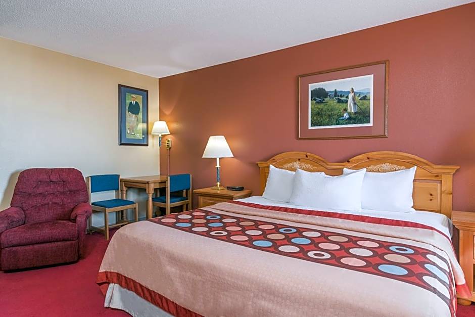 The hotel offers a variety of room types including King rooms with mobility accessible roll-in showers or tubs, King rooms with a sofa bed, and Queen rooms with two queen beds and a sofa bed. All rooms are non-smoking and can accommodate multiple guests, with the King rooms accommodating 4 adults and 3 children, and the Queen room accommodating 6 adults and 4 children. Bed sizes range from King to Queen, with additional sofa beds available in some rooms.