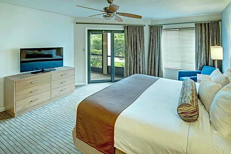 These spacious two-bedroom suites comfortably sleep 6 guests and measure 1,150 square feet. You’ll enjoy a king bed in the master bedroom, two twin beds in the guest room and a queen pull out sofa bed in the living area. For your convenience, these suites also include a fully-equipped kitchen, two bathrooms, whirlpool tub, washer/dryer and a spacious balcony.