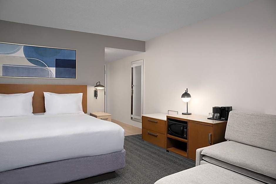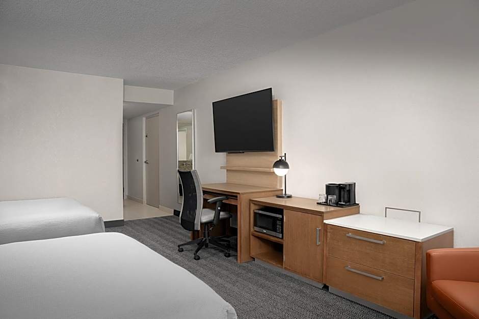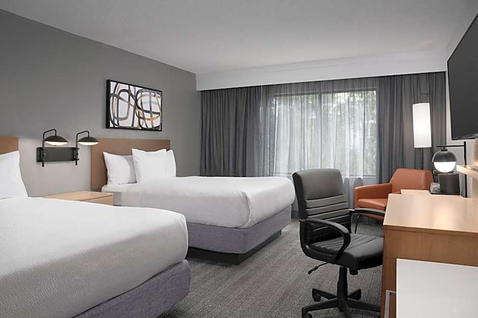 The Courtyard by Marriott Orlando East/UCF Area offers a variety of rooms including Queen Rooms with Two Queen Beds, 1 Bedroom Larger Suites with a King bed, and King Rooms. Smoking is not allowed in any of the rooms. The Queen Rooms accommodate up to 4 adults and 3 children, while the 1 Bedroom Larger Suites and King Rooms accommodate up to 3 adults and 2 children. The Queen Rooms have 1 Queen bed and a sofa bed, the 1 Bedroom Larger Suites have 1 King bed, and the King Rooms have 1 King bed and a sofa bed.