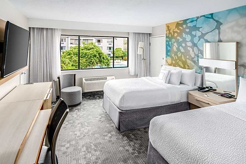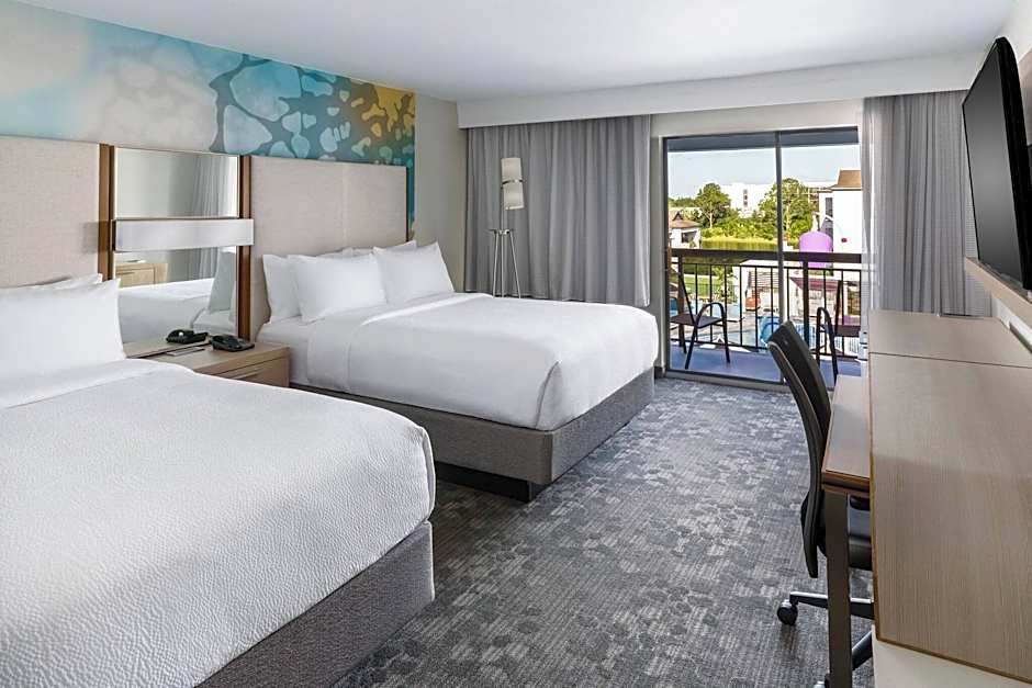 The Courtyard by Marriott Orlando Lake Buena Vista at Vista Centre offers a variety of rooms including Queen Rooms with Two Queen Beds, Suites with Two Queen Beds and a Sofa Bed, Standard Rooms with Two Queen Beds, King Rooms, and King Suites with a Sofa Bed. These rooms range in size from 323 sqft to 592 sqft. Smoking is not allowed in any of the rooms. The occupancy for these rooms varies from 3 adults and 2 children to 5 adults and 4 children.