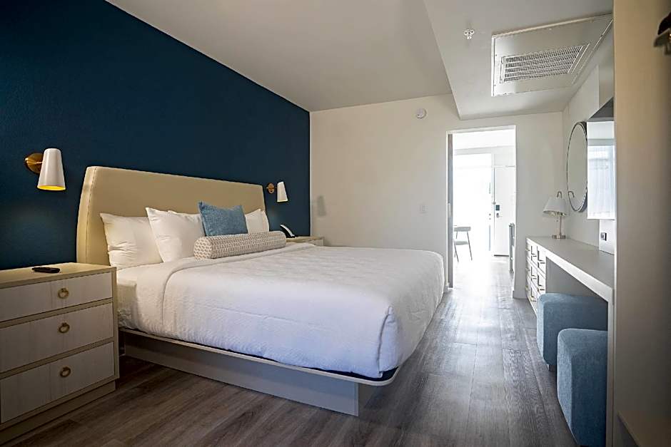 1 King Bed 1 Bedroom Suite, Pool View. Amenities: Microwave, Safe, Free Wi-Fi, Sofa Bed, Living Room, Sitting Area, 55-Inch TV, Hair Dryer, Iron and Ironing Board, Table and Chairs, and Mini-Fridge.