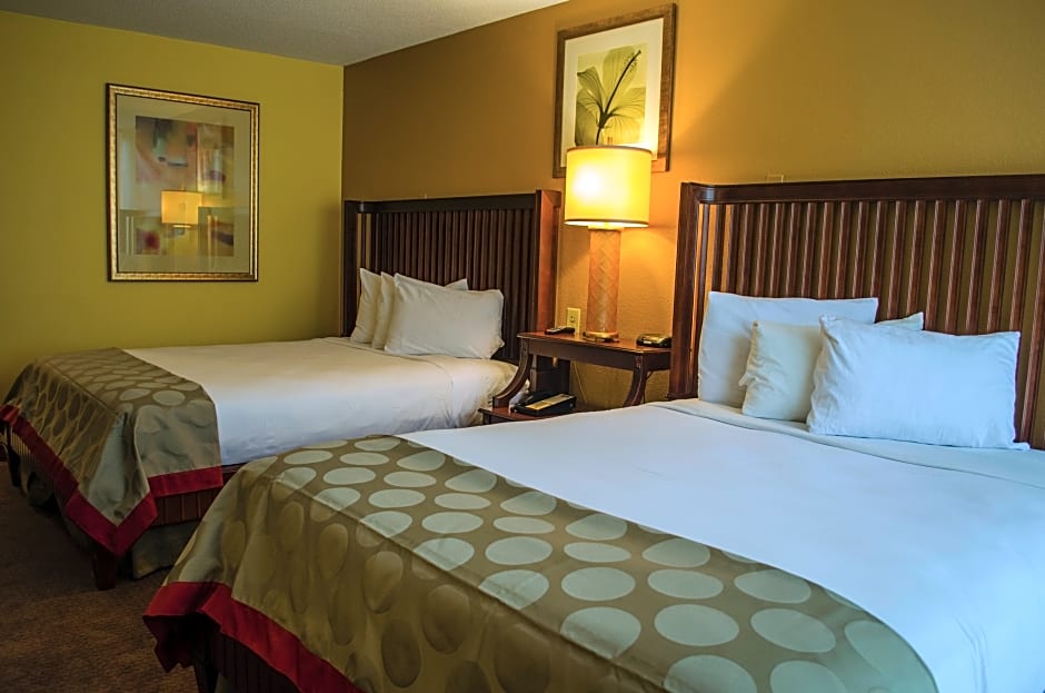 The Floridian Express International Drive offers a variety of rooms, including King Rooms with a single King-size bed and Queen Rooms with two Queen-size beds, all with a room size of 355 sqft. Smoking is not allowed in any of the rooms. The accommodations range from 2 adults and 1 child to 4 adults and 3 children.