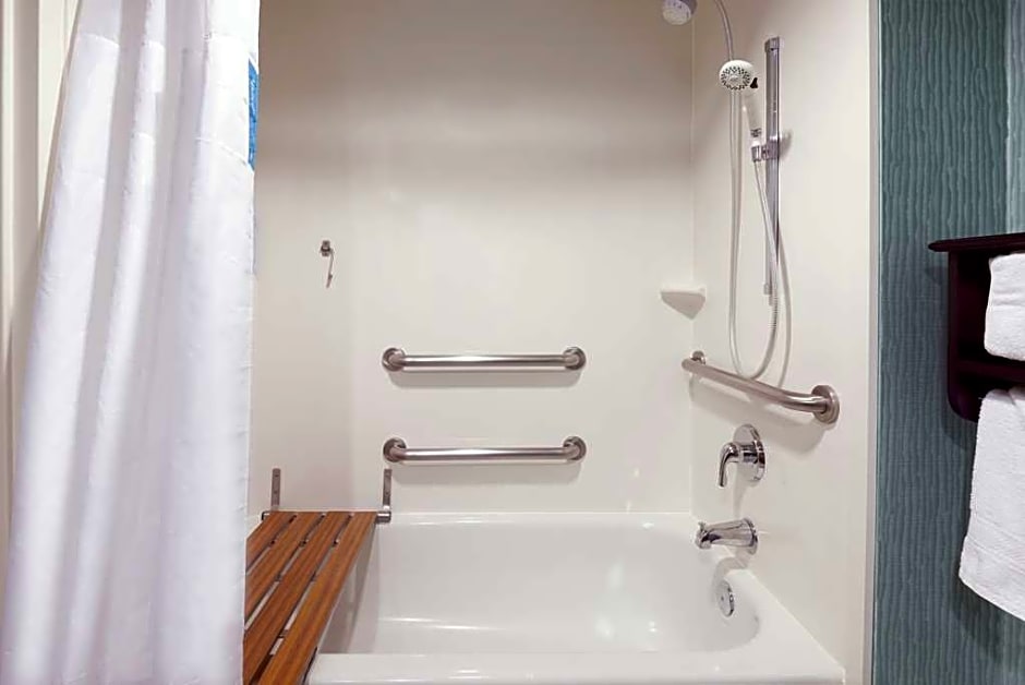 TV, free WiFi, work desk, coffeemaker, microwave, refrigerator, easy chair & ottoman Unwind in this welcoming and convenient room with one king clean and fresh Hampton bed®. Relax on the easy chair watching the TV or stay on top of business at the desk. Keep up-to-date with free WiFi. Convenient amenities include a coffeemaker, refrigerator, and microwave. The bathroom includes a shower with a curved rod that allows for more space and light.