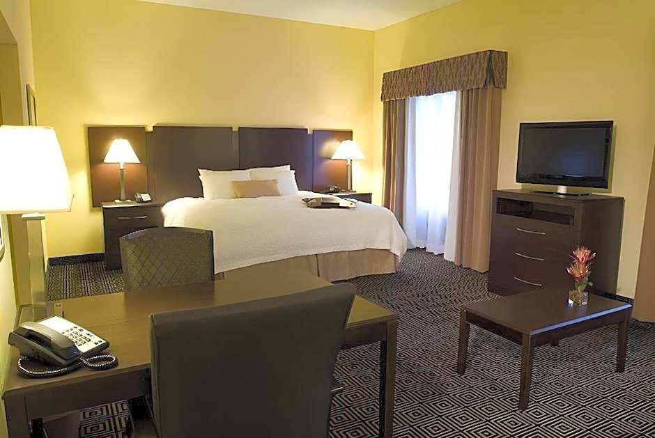 The Hampton Inn & Suites Orlando-John Young Parkway/South Park offers a variety of room types. They have King Studio Suites, King Rooms, King Rooms with hearing accessibility, and Queen Rooms with Two Queen Beds. Smoking is not allowed in any of the rooms. The room sizes range from 312 sqft to 441 sqft. The King Studio Suite and the Queen Room with Two Queen Beds can accommodate up to 4 adults and 3 children, while the other rooms can accommodate up to 2 adults and 1 child. The beds in all the rooms are either King size or Queen size.