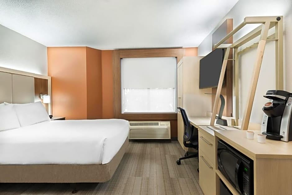 Room was either hot or freezing. Hallway was always hot. Bottom of shower door had a seal or something hanging from it wasn't very sightly but didn't hinder great shower. Our room backed up to Wendy's drive thru and late night it was very noisy and at 3am every night they dumped trash into the dumpsters I just thought over 200 per night is over priced for a holiday inn express with no view and the late night noise but would stay there again just ask for the other side of the hallway as floor 2 is where you stay if you have pets and we had to take 2 dbl beds instead of the king I booked for a new years eve romantic 3nt stay.