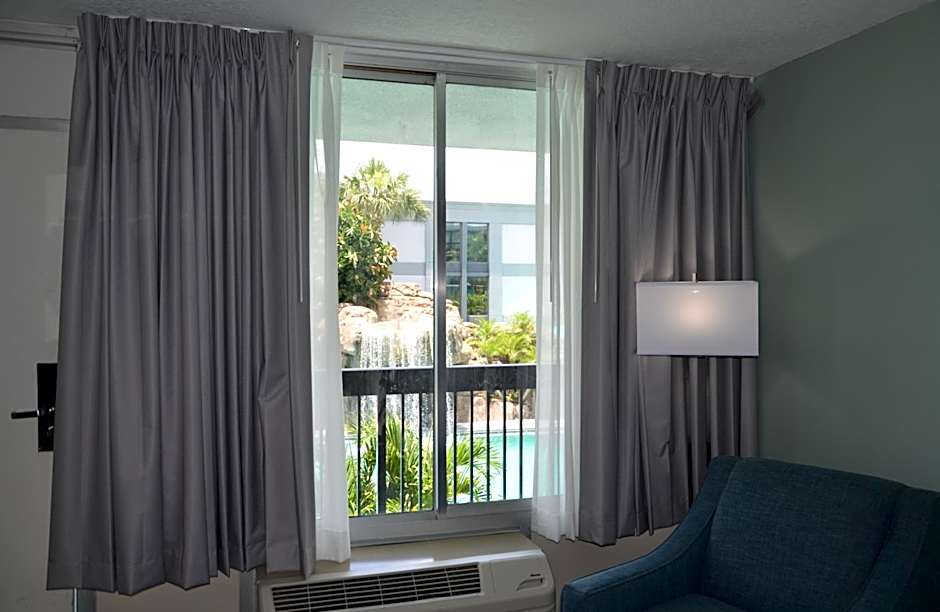 This room features a flat-screen TV with cable channels. A refrigerator, coffee maker, and microwave are provided as well. Guests will enjoy the comfort of a furnished seating area with a sofa bed.