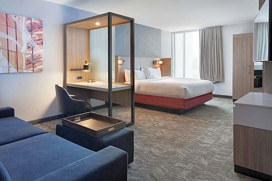 The SpringHill Suites by Marriott Orlando at Millenia offers a variety of suites. These include King Suites with Sofa Bed, Queen Suites with Two Queen Beds and Sofa Bed, and Queen Suites with Trundle Bed - Hearing Accessible. All rooms are non-smoking and vary in size from 366 sqft to 495 sqft. Occupancy ranges from 3 adults and 2 children to 5 adults and 4 children.
