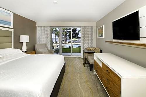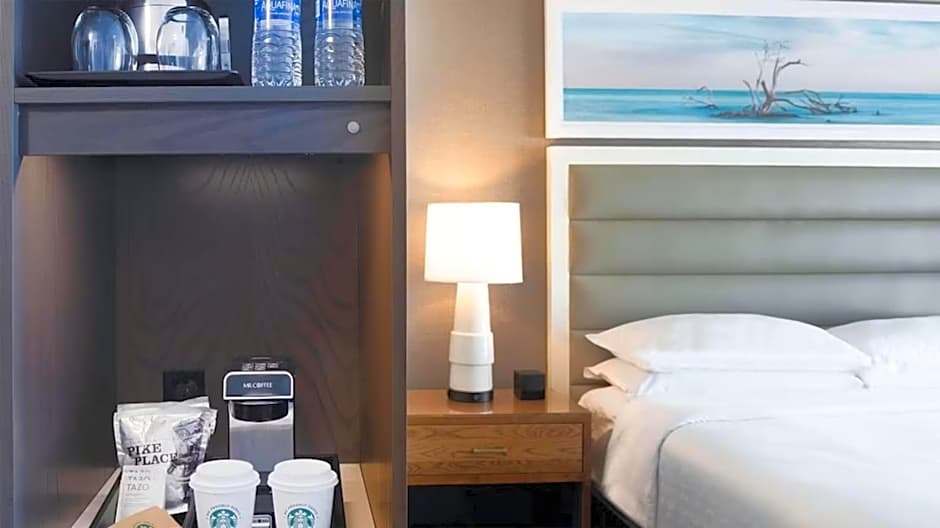 On-site dining provides options for every mood: TIDES Restaurant & Lounge serves American fare, Pelicans Bar & Grill is family-friendly with American and seafood options, Flip Flops Pool Bar offers American bites by the water, and Cabana Café brings a Modern ambiance for lighter fare.