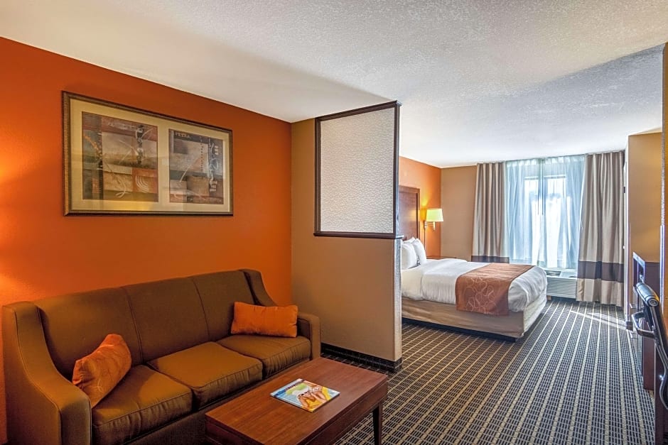 At Comfort Suites hotel, they offer a variety of suites including an Accessible Suite with Two Queen Beds and Roll In Shower, a King Suite with Sofa Bed, a Queen Suite with Two Queen Beds and Sofabed, an Accessible Suite with Two Queen Beds and Accessible Tub and Sofabed, and an Accessible King Suite with Sofabed. All rooms are non-smoking and have different bed sizes to accommodate various occupancy needs.