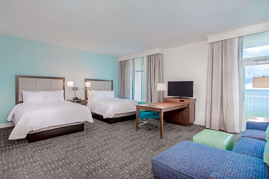 The Hampton Inn & Suites Panama City Beach-Beachfront offers a variety of room types including suites and quadruple rooms. The rooms have either queen or king beds and can accommodate anywhere from 2 to 6 adults, with additional space for children. All rooms are non-smoking and some rooms offer accessible features such as roll-in showers and mobility/hearing accessibility.