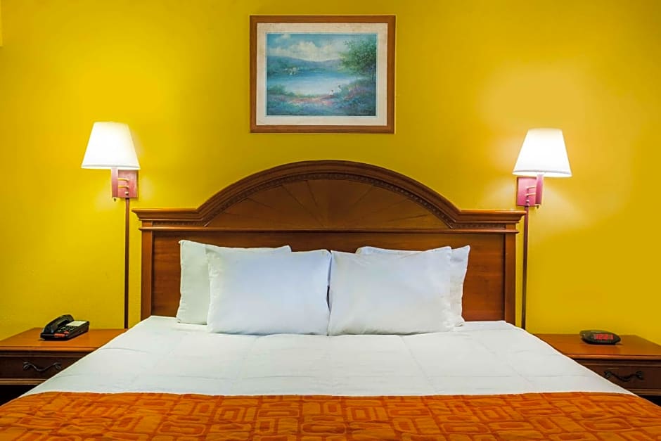 Free high-speed WiFi, free light breakfast, kitchenette, mini-refrigerator, air conditioning, shower/bathtub, coffee/tea maker, hair dryer, cable TV, bathroom amenities, iron/ironing board, alarm clock, cribs available, rollaway beds available, free bottled water, exterior corridor