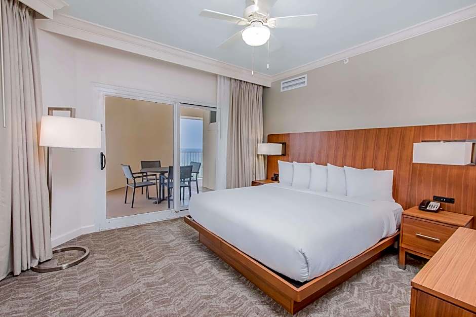 Beach views, two large private balconies, kitchen, dining table, sofa bed, complimentary WiFi This large suite features three bedrooms, one with a king-sized bed, one with a queen-sized bed, and the other with bunk-beds. Admire the view of the white sand Pensacola Beach from the balcony, or unwind in the en-suite bathroom with separate bathtub and shower. Relax in front of a flat-screen TV, in any bedroom or the living room, with premium cable channels and on-demand movies. Other amenities include complimentary WiFi, a dining table, and a fully-equipped kitchen with microwave, refrigerator, dishwasher and breakfast bar.