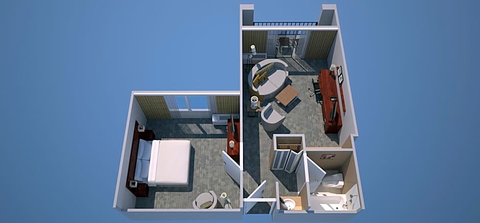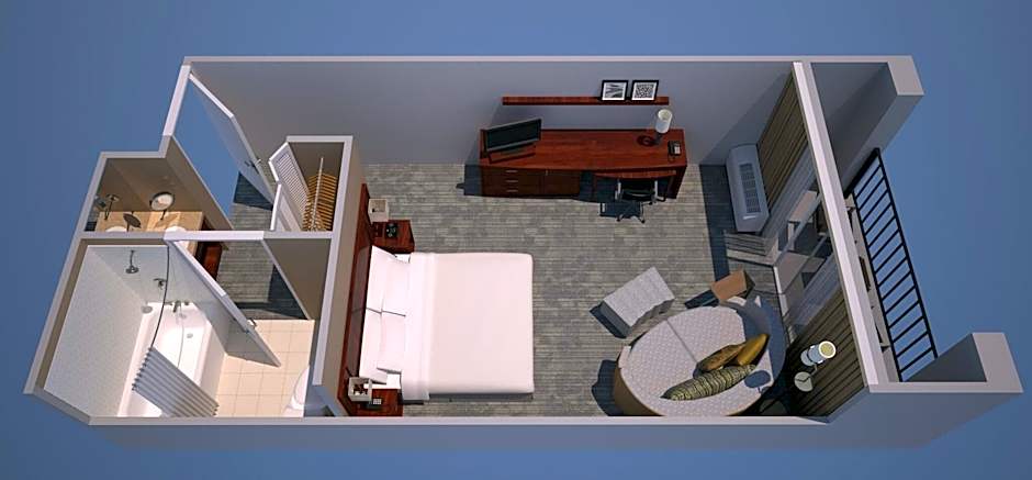 The air-conditioned suite has 1 bedroom and 1 bathroom with a bath or a shower and a hairdryer. This suite features a seating area and a TV with cable channels. The unit has 1 bed.