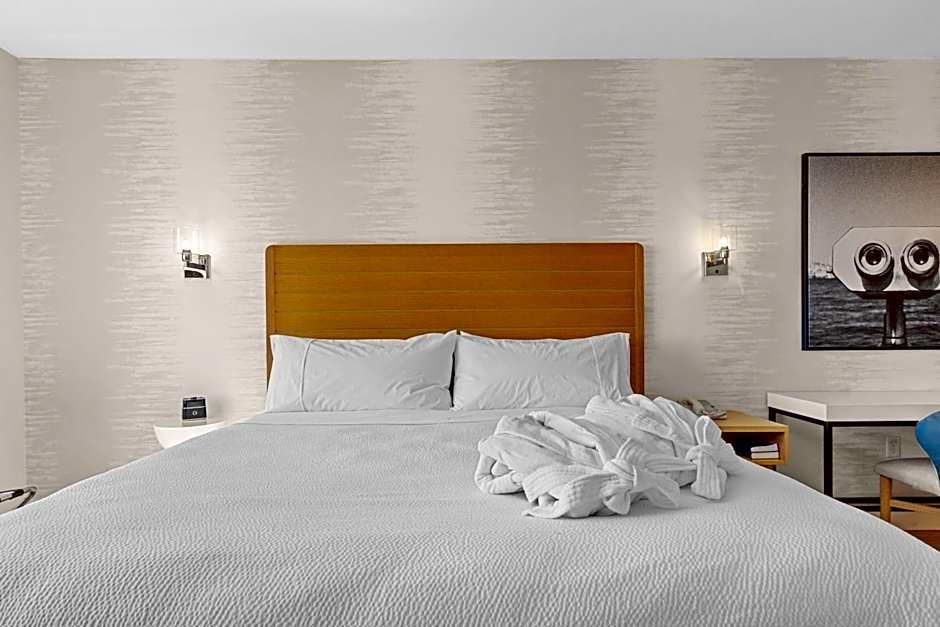 The hotel offers rooms with various bed configurations including king and queen beds. Occupancy accommodates 2 adults and 1 child, with smoking not allowed in any room type. Rooms range in size from 291 sqft to 420 sqft, offering views of the marina or harbor, with some featuring balconies.