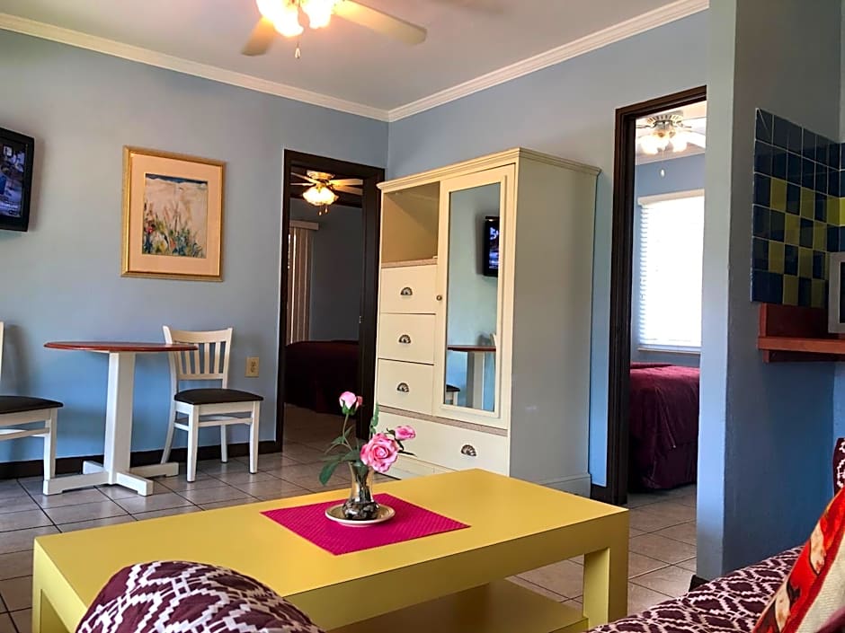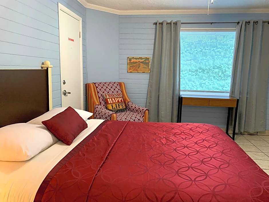Very well maintained 1950's old Florida motel on a beautiful lake. Very quiet and safe. Lovely sunsets. When the staff saw my husband is in a wheelchair, they up graded our room to one with a larger shower-at no extra charge. Seems family run, and they are invested in high standards. I am leary of "vintage" or "retro", but this really is the best of "retro'!