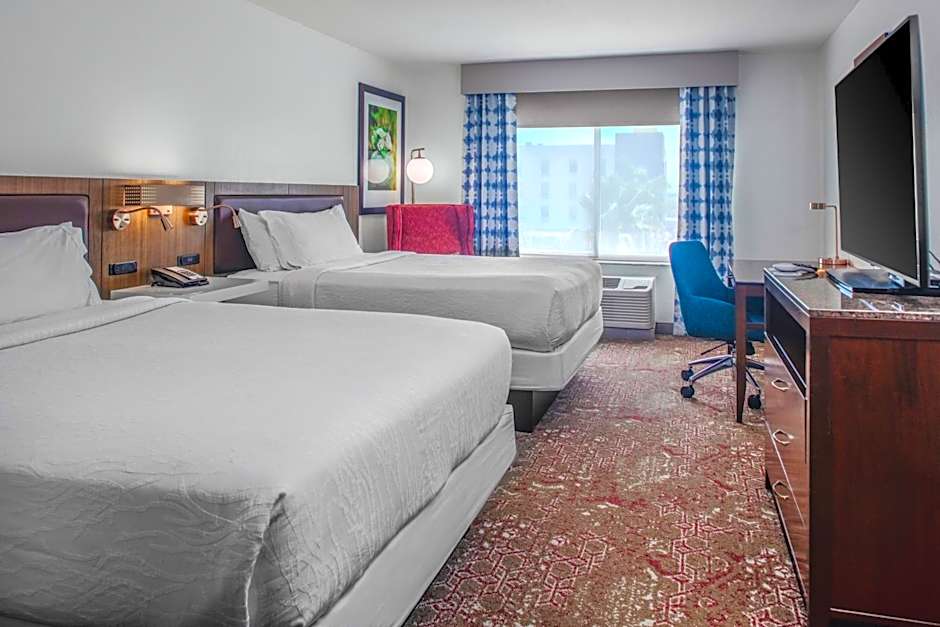 The Hilton Garden Inn Sarasota-Bradenton Airport offers a variety of room types. These include King Rooms, Queen Rooms with Two Queen Beds, and One-Bedroom King Suites with a Sofa Bed. All rooms are non-smoking and have a room size of approximately 355 sqft, except for the One-Bedroom King Suite which is larger at 560 sqft. The King Rooms accommodate 2 adults and 1 child, while the Queen Rooms and One-Bedroom King Suites accommodate 4 adults and 3 children. Each room is equipped with either a King size bed or two Queen size beds.