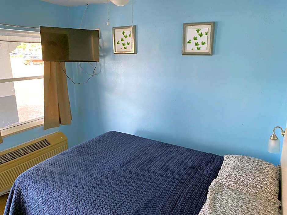this was the tiniest motel room I have ever stayed in. I don't know if all the rooms are this small, but mine sure was. The only flat surface was the top of the microwave which was on top of the mini fridge and the toilet tank. No table, no chair, you had to sit on the bed. I was only there overnight, but I don't think I would do it again.