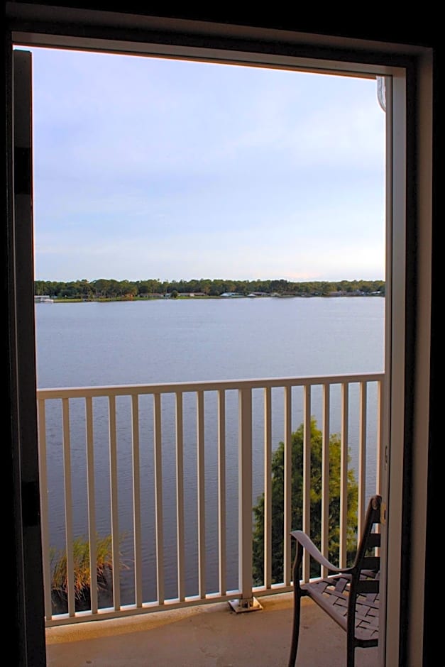 Spacious suite featuring a lake view and separate living room with sofa bed.