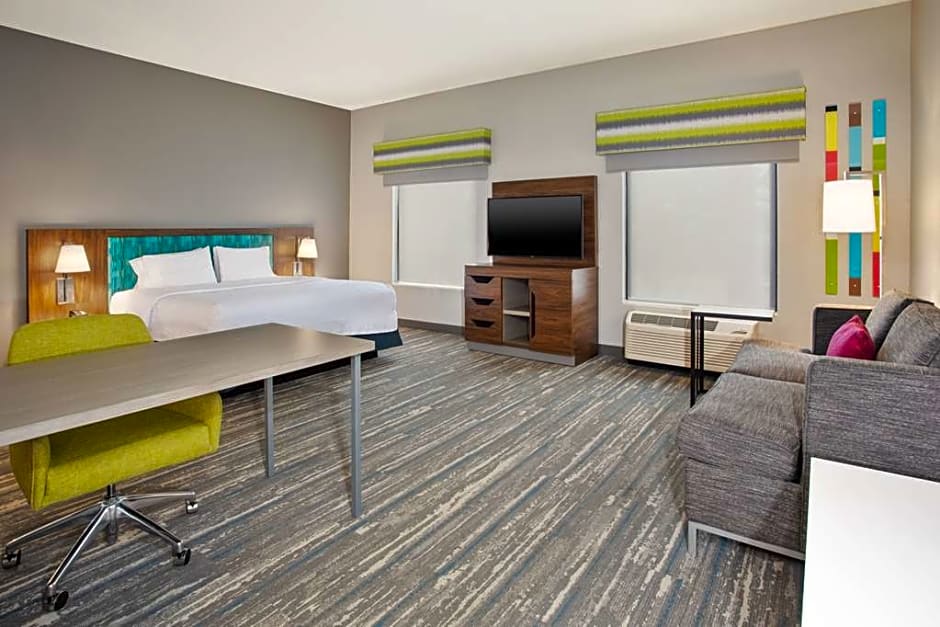 32-inch HDTV, sofa bed, coffeemaker, free WiFi, work desk, microwave, refrigerator Unwind in this welcoming studio suite with one king-sized clean and fresh Hampton bed® and a handy sofa bed. Relax watching the free HBO premium movie channel on the 40-inch LCD HDTV or stay on top of business at the desk. Keep up-to-date with free WiFi. Convenient amenities include a wet bar, coffeemaker, mini-refrigerator, and microwave. The bathroom includes a shower with a curved rod that allows for more space and light.