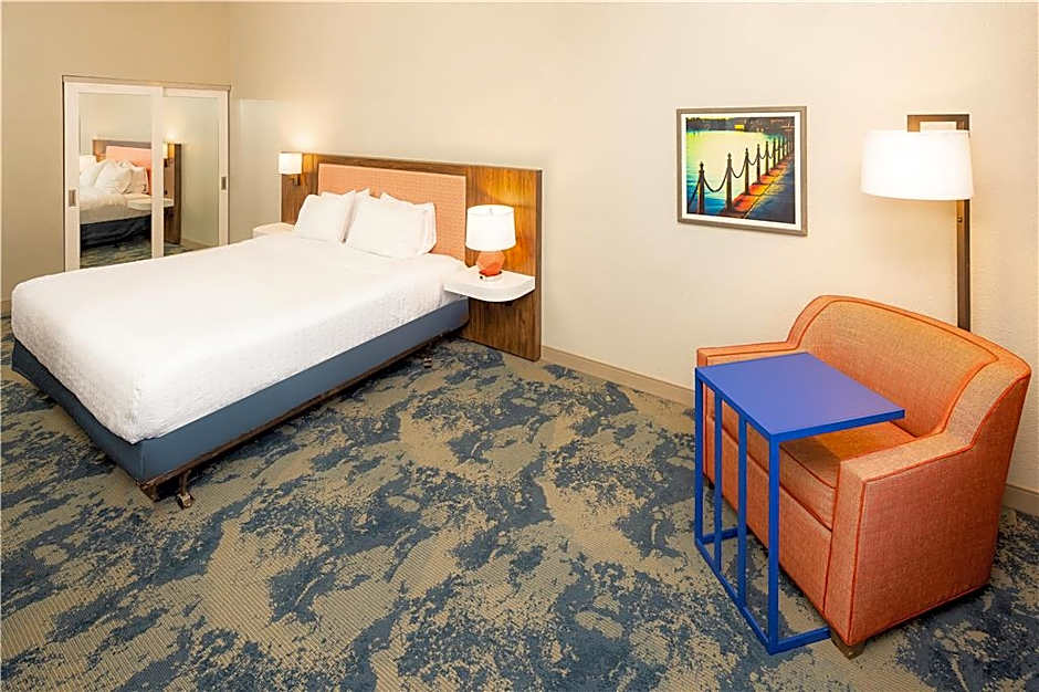 View, balcony, whirlpool tub, sofa bed, free WiFi, refrigerator, microwave, two 32-inch HDTVs Enjoy the ocean view from the balcony of this two room mini-suite which features one king-sized clean and fresh Hampton bed® and a sofa bed for extra guests. Relax and watch a movie on one of the two 32-inch HDTVs or work at the desk and stay connected with free WiFi access. Other convenient amenities include a refrigerator, a microwave and a coffeemaker. Refresh yourself in the bathroom which offers fluffy towels, a whirlpool tub and a shower with a Waterpik® showerhead and curved shower rod for extra light and space. This is a non-smoking suite.