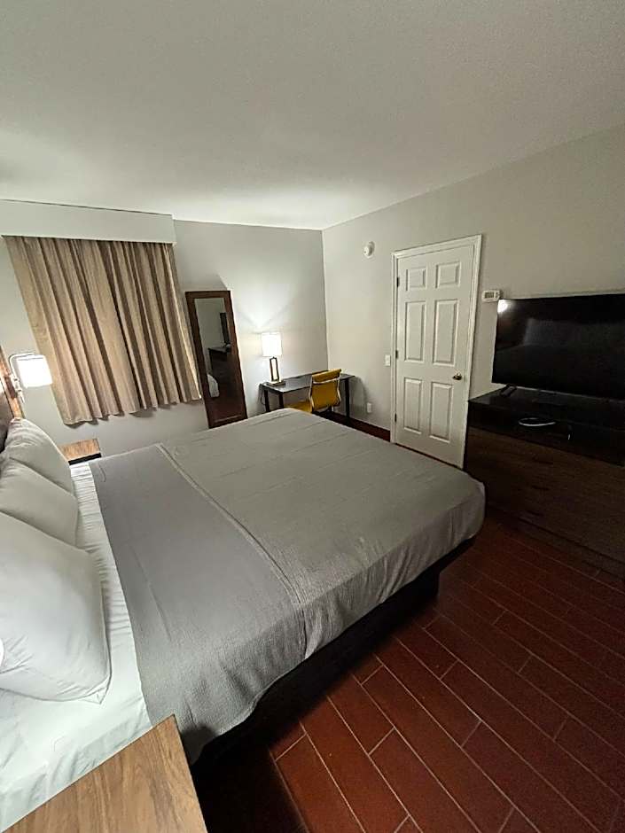 Upon arrival the property and pool appeared well kept and clean. The owners at the front desk were friendly and very accommodating. The room looked and smelled clean. The price and location were perfect. There is a shuttle across the street that runs until midnight I slept well as the location was quiet during my stay on a Saturday night.