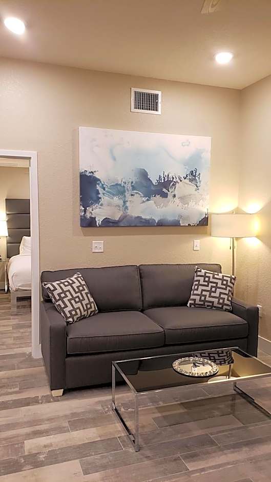 The hotel offers a variety of rooms including Studios with poolside or Gulf front views, Premium Suites with ocean views, 1 King Bed and 1 Queen Bed options, 2 Bedroom Suites, and accessible rooms with roll-in showers. Smoking is not allowed in any of the rooms. Accommodations range from 2 adults and 1 child to 6 adults and 3 children. Bed sizes include Queen, King, and Sofa beds, with room sizes varying from 323 sqft to 850 sqft.