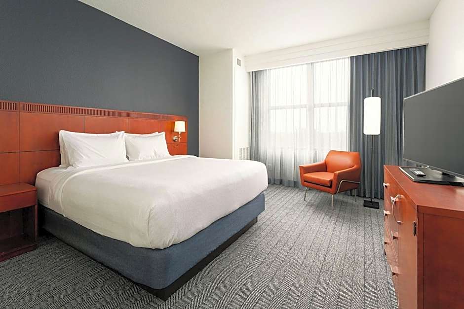 The Courtyard by Marriott St. Petersburg Downtown offers three main types of rooms. The first is the King Room, which can accommodate 2 adults and 1 child, has a non-smoking policy, and features a King size bed. The second is the King Room with Sofa Bed, which can accommodate 3 adults and 2 children, also has a non-smoking policy, and features a King size bed. The third is the Queen Room with Two Queen Beds, which can accommodate 4 adults and 3 children, has a non-smoking policy, and features 2 Queen size beds.