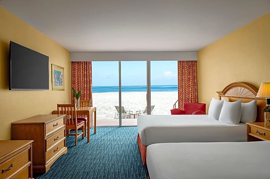 The Dolphin Beach Resort offers double rooms with two double beds and pool view, street view, as well as queen rooms with two queen beds and beach view. These rooms are all quadruple occupancy and range in size from 377 sqft to 398 sqft. Smoking is not allowed in any of these rooms. The beds in the double rooms are double size, while the beds in the queen rooms are queen size.