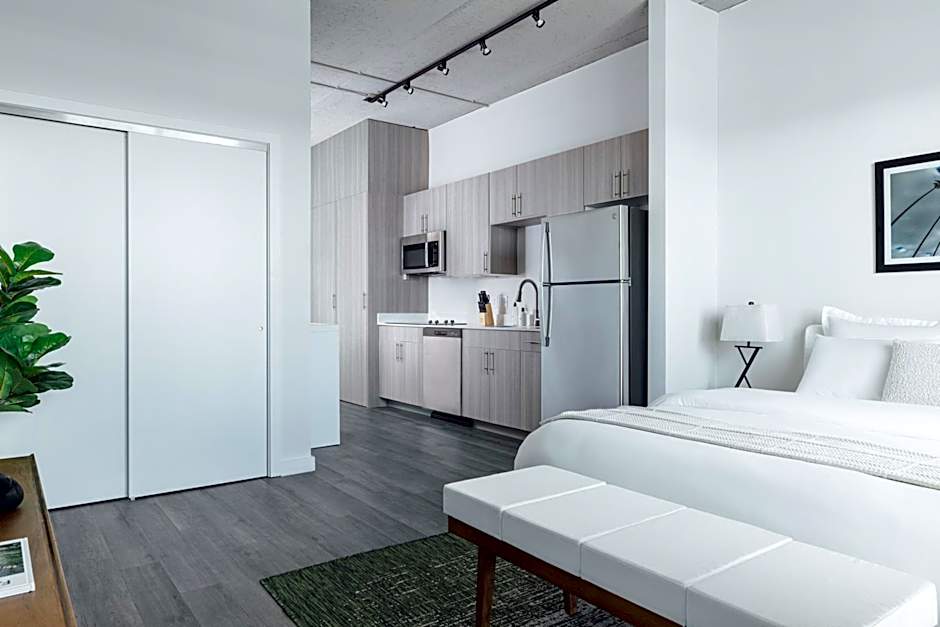 very no-frills. felt less like a hotel and more like an empty apartment complex. not much of a "lobby" to speak of, but staff was friendly. parking situation was weird. ended up parking on the street and risking a ticket as that was cheaper than the $35 for valet. great location. the units themselves have lots of space and a decent-sized kitchen so it's definitely a great option for someone spending multiple days in this area.