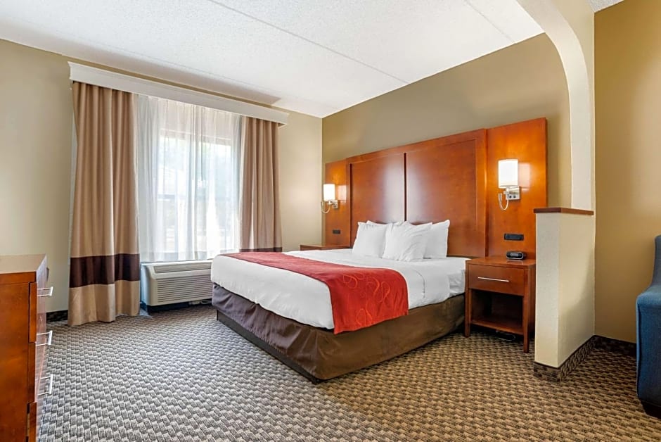 The Comfort Suites Tallahassee Downtown offers a variety of room types, including Superior King Rooms, Superior Queen Suites with Two Queen Beds, King Suites (some of which are accessible), and King Suites with Sofa Beds. All rooms are non-smoking and have different sizes ranging from 334 sqft to 398 sqft. The occupancy varies between accommodating 2 adults and 3 children to 4 adults and 4 children. Bed options include King size beds, Queen size beds, and Sofa beds.