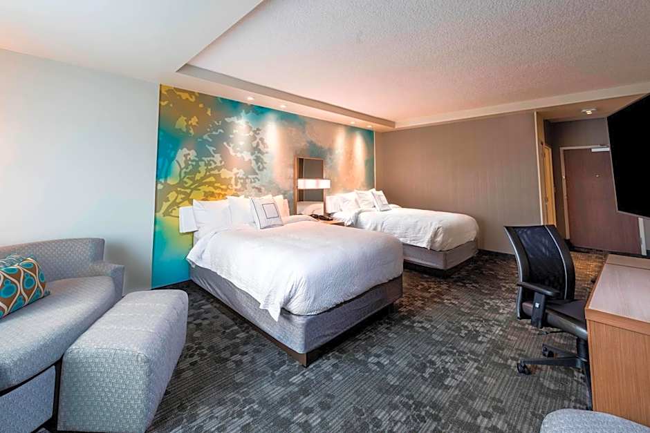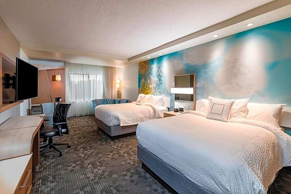 The Courtyard by Marriott Tampa Northwest/Veterans Expressway offers Double Queen Rooms and King Rooms. The Double Queen Rooms have a room size of 355 sqft and accommodate up to 4 adults and 3 children. The King Rooms have a room size of 312 sqft and accommodate up to 3 adults and 2 children. Smoking is not allowed in either type of room.