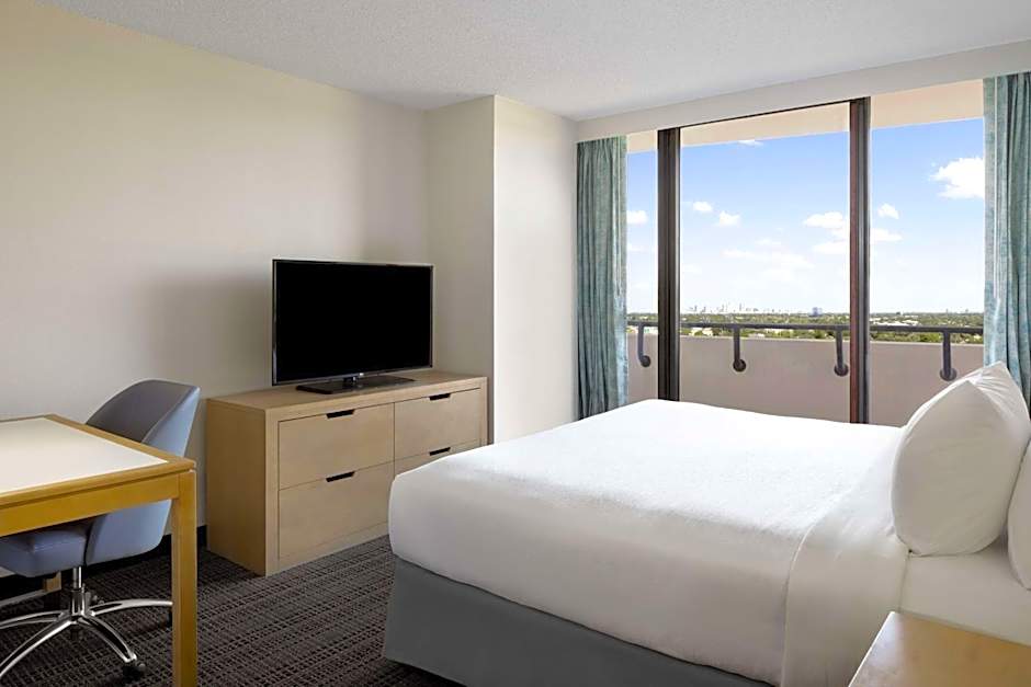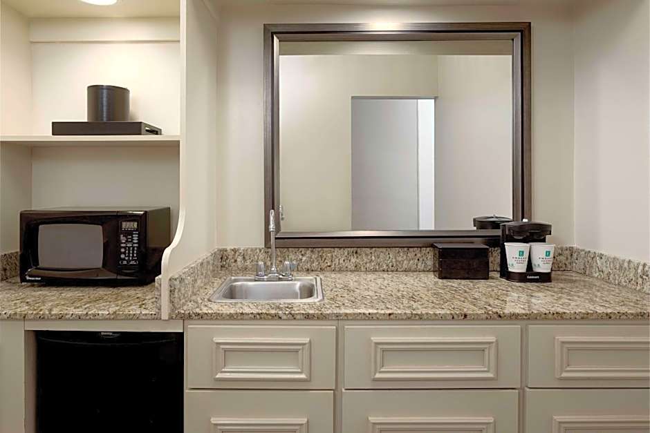 Accessible tub, living room, mini-fridge, microwave, two 32-inch TVs, sofa bed Relax in this Tampa hotel suite that features a separate living room with armchair, sofa bed and activity table. Amenities of this 2 room suite include two 32-inch TVs, microwave, coffeemaker, mini-refrigerator and alarm clock with MP3 connection. Unwind in the private bedroom with 1 king-sized bed and have a restful night's sleep on beautiful linens beneath a plush duvet cover. Refresh in the bathroom with marble vanity, accessible tub, white cotton plush towels and rounded shower rod for added space. Any corresponding photo may not reflect the specific accessible room type or room feature.