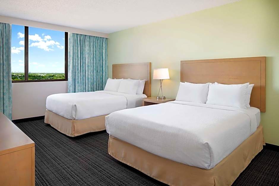 Bay view, living room, mini-refrigerator, microwave, two 32-inch TVs, sofa bed, WiFi Unwind in this 2 room suite and admire stunning views of Tampa Bay. The suite features a separate living room with armchair, sofa bed and activity table. Other amenities include two 32-inch TVs, microwave, coffeemaker, mini-refrigerator, MP3 alarm clock radio and WiFi (fees apply). Unwind in the private bedroom with 2 queen-sized beds and have a luxurious night's sleep on beautiful linens. Refresh in the bathroom including marble vanity, lush white towels and a tub with shower and rounded shower rod.