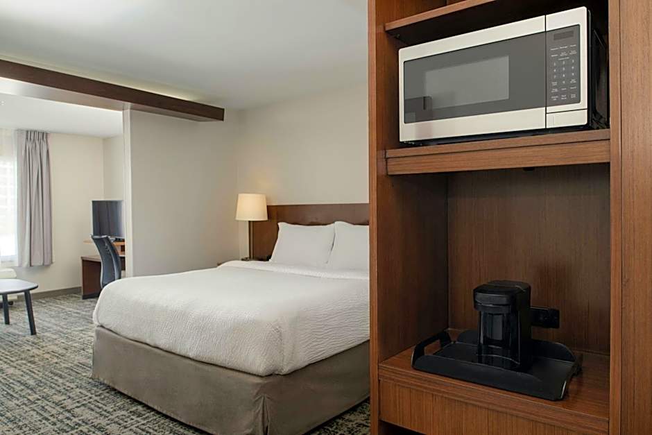 The hotel offers King Rooms, Queen Rooms, and King Studios. The King Rooms and Queen Rooms have a room size of 3584 sqft and can accommodate 2 adults and 1 child. The King Studios are larger with a room size of 6458 sqft and can accommodate 3 adults and 2 children. All rooms have non-smoking policies. The King Studio with Sofa Bed and the Queen Room with Two Queen Beds have adaptations for mobility and hearing accessibility.