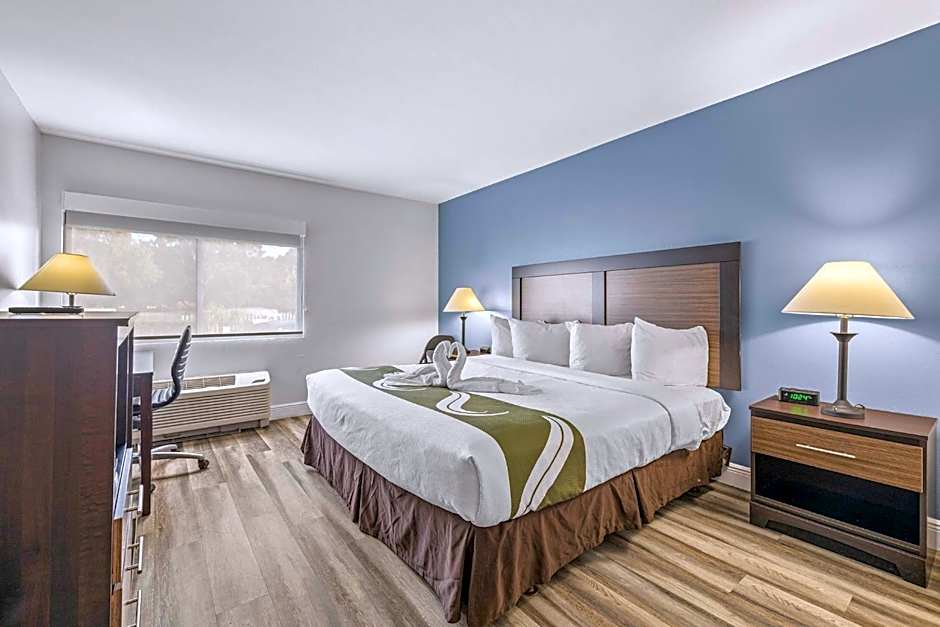 The Quality Inn & Suites Near Fairgrounds & Ybor City offers a variety of rooms. They have King Suites with Sofa Beds, King Rooms with disability access, Queen Rooms with two Queen Beds, and King Rooms. All rooms are non-smoking and have a room size of 323 sqft. The occupancy ranges from 2 adults and 1 child to 4 adults and 3 children, depending on the room type.