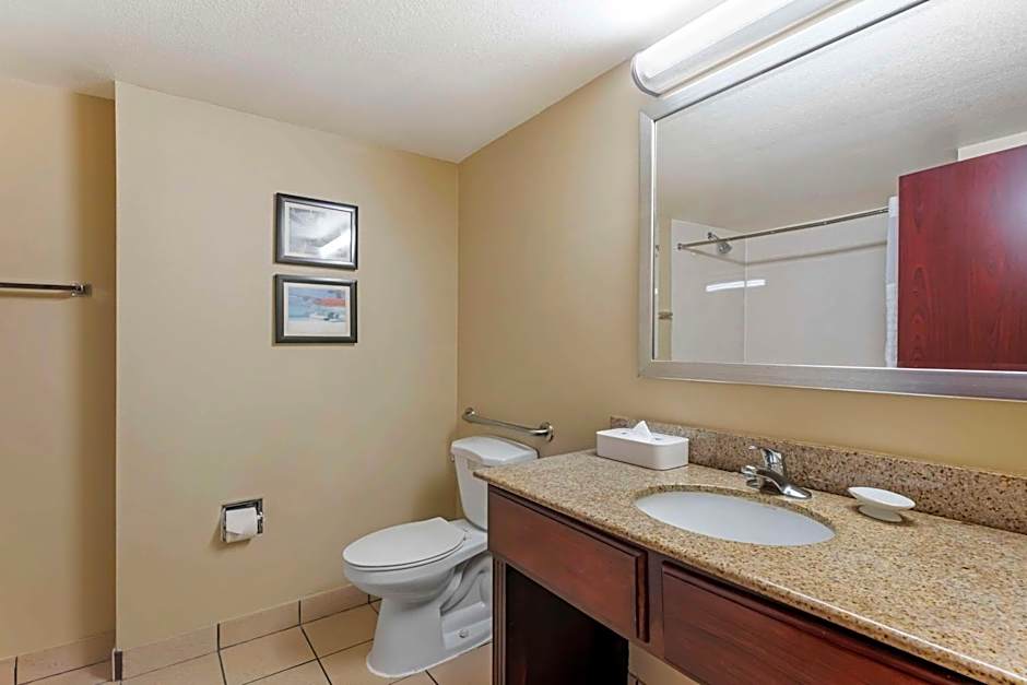 Offering free toiletries, this suite includes a private bathroom with a bath, a shower and a hairdryer. The fully equipped kitchenette has a refrigerator, a microwave and a tea and coffee maker. This wheelchair accessible suite features air conditioning, a seating area with a TV and a toilet with grab rails.