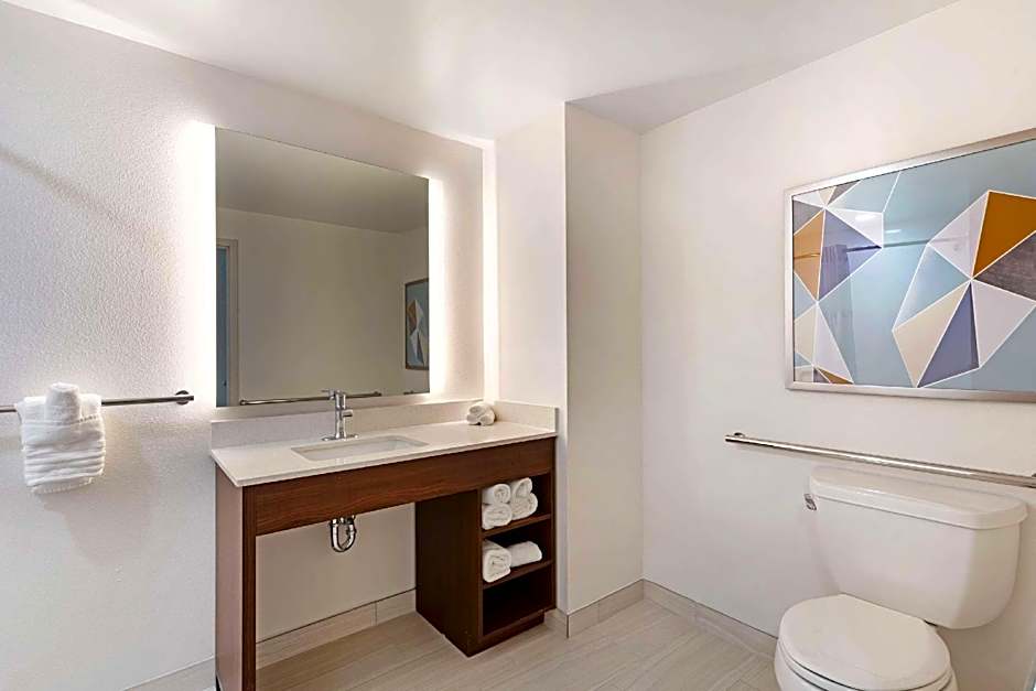 Brand new facility. Only been open for eight weeks. Very spacious room and clean room. Bed was surprisingly comfortable. Large, easy entry shower with sliding shower doors (no shower curtain 😃). Typical hotel breakfast, nothing to rave about, but was good. Breakfast area was very clean and stocked.