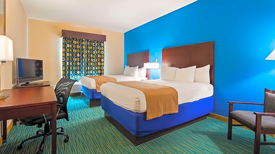 The Best Western Wesley Chapel offers a variety of room types. The Queen Room with Two Queen Beds, both with and without disability access, accommodates up to 4 adults and 3 children. The One-Bedroom Suite with two King Beds is ideal for those seeking more space and features 2 King size beds. The hotel also offers a King Room, which can accommodate 2 adults and 1 child. Smoking is not allowed in any of these rooms.