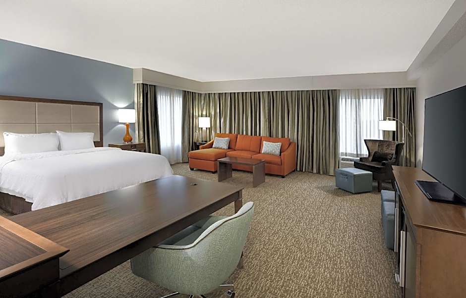 The Hampton Inn West Palm Beach Central Airport offers various room types such as King Rooms, Queen Rooms, Deluxe King Rooms with Sofa Beds, King Studio Suites, and King Rooms with Hearing Accessibility. All rooms are non-smoking and have a room size of 301 sqft. The King Rooms accommodate 2 adults and 1 child, while the Queen Rooms and Deluxe King Rooms with Sofa Beds accommodate 4 adults and 3 children. The King Studio Suites also accommodate 4 adults and 3 children, and the King Rooms with Hearing Accessibility have the same occupancy as the King Rooms.