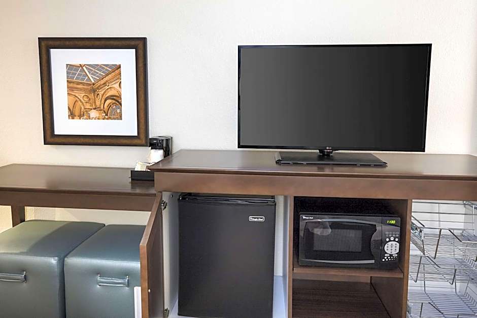 This suite features air conditioning, cable TV, and a seating area. A microwave and refrigerator are also provided.