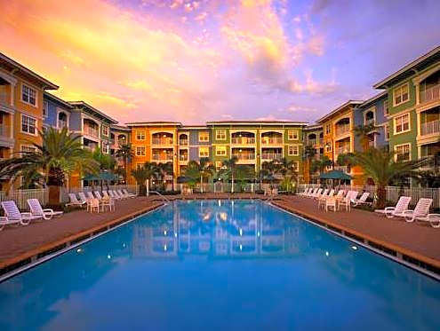 I liked everything but especially the heated pool which appeared sea side like despite being right near the town center, was extremely well maintained, with great tables for eating and hanging out, amidst palm trees, all meticulously taken care, hot tub, and. this oasis was within walking distance to all the town center amenities such as restaurants, supermarkets or Starbucks, so one doesnt even have to use the car. Rooms were flat like with nice kitchen, living area and balcony with a view to the pool. Many activities gymnastics in the pool, etc. Easy to park and carry bags to room by parking car at the same level as room suite.