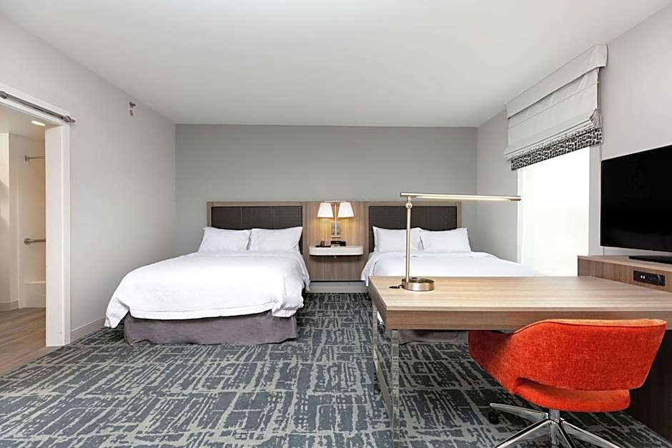 The types of rooms available at the Hampton Inn Acworth hotel include King Rooms, Queen Rooms with Two Queen Beds, and Queen Studio Suites with Two Queen Beds. These rooms have a size of 301 sqft and do not allow smoking. The King Rooms accommodate 2 adults and 1 child, while the Queen Rooms and Queen Studio Suites accommodate 4 adults and 3 children. The Queen Studio Suite also includes a sofa bed, allowing it to accommodate 5 adults and 4 children.