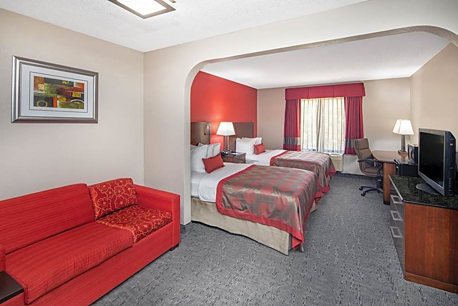 The Ramada by Wyndham Alpharetta Atlanta North offers a variety of room types, including suites and double rooms. The rooms are all non-smoking. The bed sizes vary, with options including king size beds, double beds, and sofa beds. The rooms accommodate different numbers of guests, ranging from 2 adults and 1 child to 6 adults and 4 children.