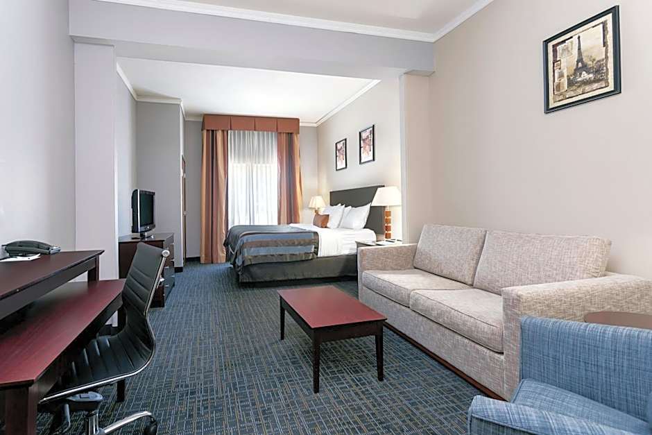 Other amenities include a convenience store on-site, designated smoking areas, and a shared lounge area for you to relax and unwind. The hotel is pet-friendly, with extra charges, and offers private parking and free WiFi. Each room is equipped with air conditioning, a flat-screen TV, a refrigerator, a coffee machine, and a private bathroom. With its great location, excellent amenities, and affordable prices, Wingate by Wyndham Athens GA is the perfect choice for your next trip to Athens, Georgia.