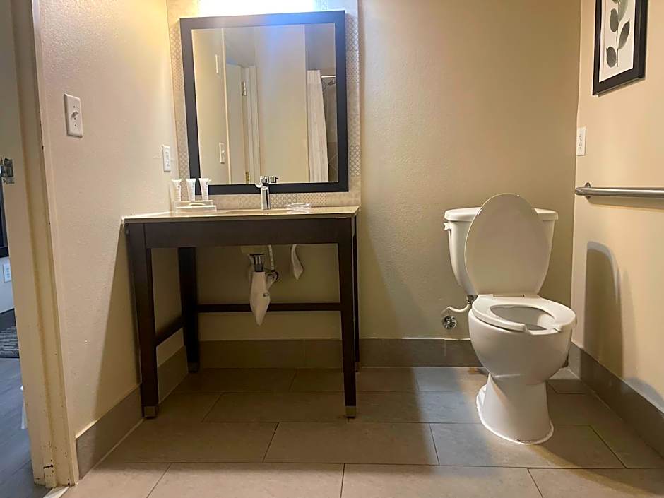 This accessible room features a microwave, refrigerator, free Wi-Fi and cable TV.