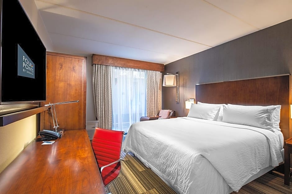 The Four Points by Sheraton Atlanta Airport West offers a variety of room types, including Traditional King Rooms with a King or Queen size bed, Deluxe Corner King Rooms with a King bed and a sofa bed, Traditional Rooms with Two Double Beds, and Executive King Suites with a King bed and a sofa bed. All rooms are non-smoking and can accommodate multiple adults and children. Room sizes range from 301 to 581 square feet.